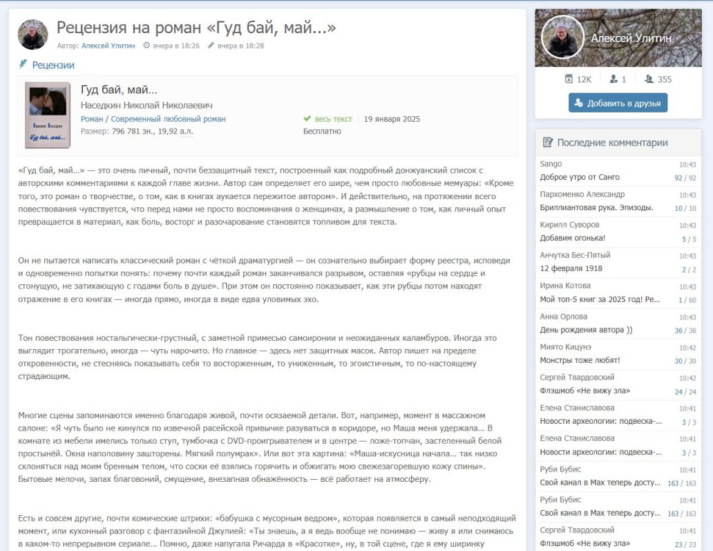 появились любопытные отзывы-рецензии на книгу «Гуд бай, май...», причём